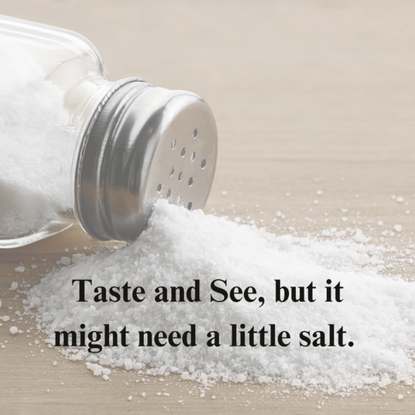 .. Say this with me! That’s the Q-TIP, people … I get it now… Taste and See, but it might need a little🧂Salt; Psalms 34:8; Matthew 5:13-16. … The Relationship Series. Here’s another thing they didn’t tell you about your relationship with Jesus… is that 1. you’re walking blind; a leap of faith, they called…